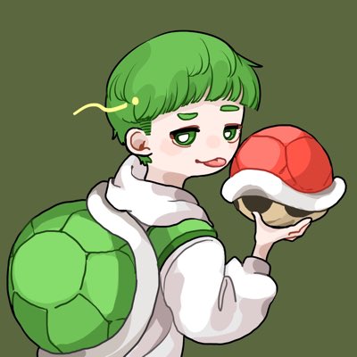 #新しいプロフィール画像 望野くてむ様に描いて頂きました。 煽ってる顔がめちゃめちゃ好きです。 手に持ってる赤甲羅は誰かにぶち当てたいと思います。