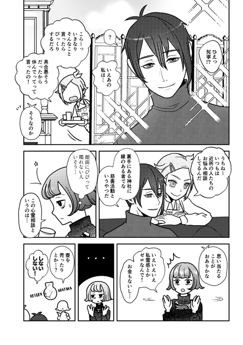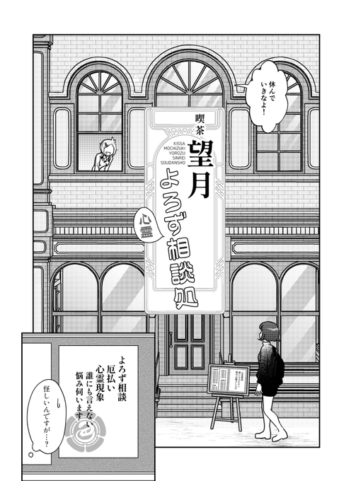 包丁くんと三日月がお悩み相談喫茶を開く話(1/7) 『喫茶望月 よろず心霊相談処』 ※大侵寇のあとに描いたお話 ※男審神者がいます