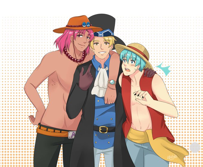 ✨Cosplay Time parte 3 💙❤️💛 No sé si alguien se lo esperaba u v u pero One Piece es de mis animes favoritos y decidí dibujar a TCC con el cosplay de los 3 hermanos 💖