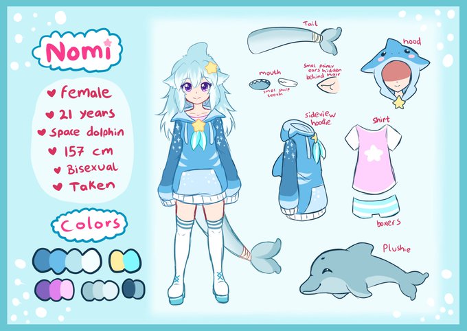 Just a small little update to Nomi's design! I was originally gonna hide her ears and I've decided to go with that in the end! She still has her smol pointy ears but they are hidden behind her fluffy hair 🌊✨
