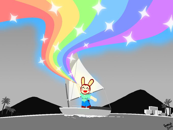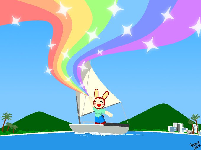 渚を滑るディンギーで 手を振る君の小指から 流れ出す虹の幻で 空を染めてくれ 라는 느낌으로 조금 예전에 그린 것