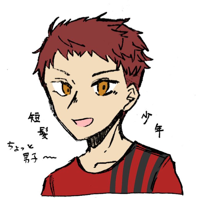 これは鍵垢に載せた、「短髪……短髪………」と短髪に懊悩しながら描いた新しいキャラクターのデザイン案(簡易)