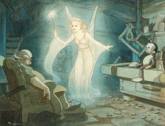 Concept art from Disney's PINOCCHIO (1940) by Swedish-American artist Gustaf Tenggren.