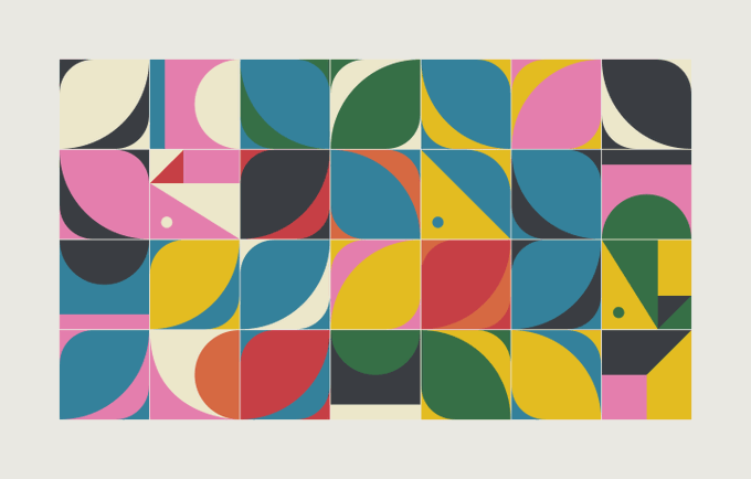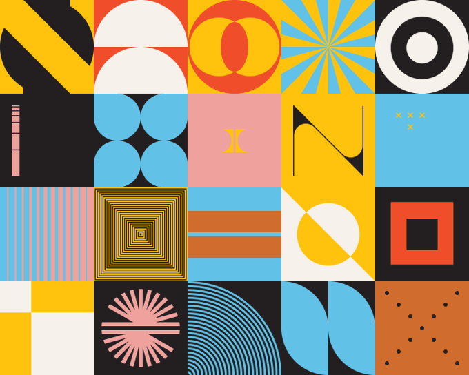 Bauhaus inspired vector pattern made with abstract geometric forms and deconstructed elements. Square composition.