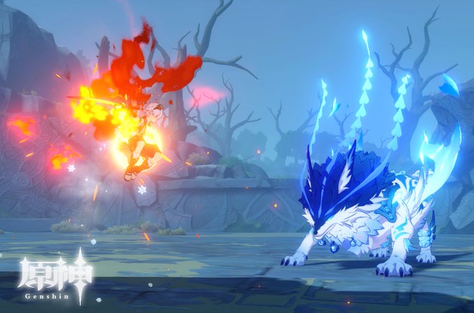 ドラゴンスパインで凍ってるイノシシ達、香菱さんの伝説任務にいた凍ってるイノシシと同種なのです。