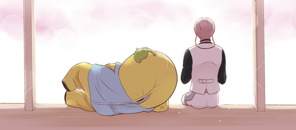 ふなっしー審神者と亀甲さん本の表紙絵、こんな案もあったんですけど思いついた瞬間ボツにしましたね