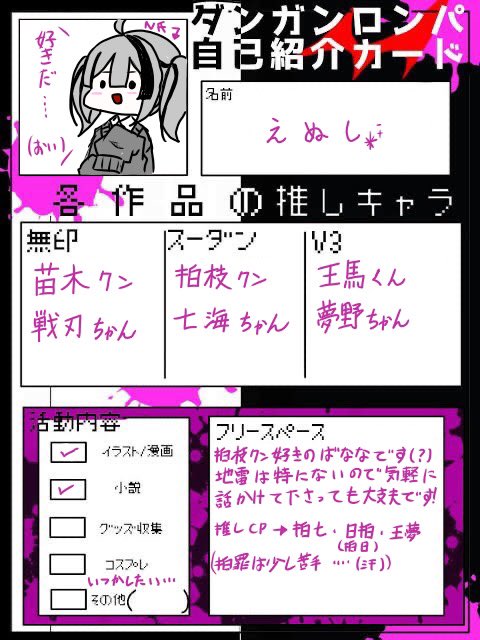 テンプレお借りします〜🙏✨ 無印・スーダン・絶女・V3 全てプレイしております〜!狛枝くん推しです!! RT・♡で巡回させていただきます〜😊😊 #ダンガンロンパ好きな人と繋がりたい