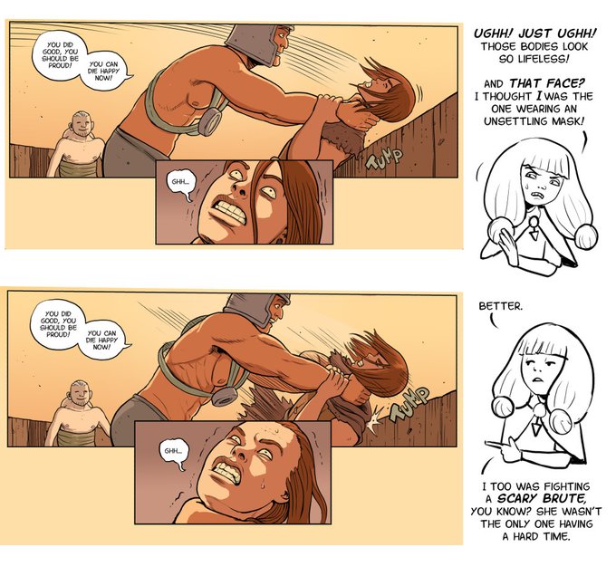 #webcomicday, you say?! May I interest you in an action-packed fantasy story featuring giant lizards, creepy magic and one cool buff lady? It’s called Ten Earth Shattering Blows and you can start reading it here: https://t.co/aH0v9jm8YT