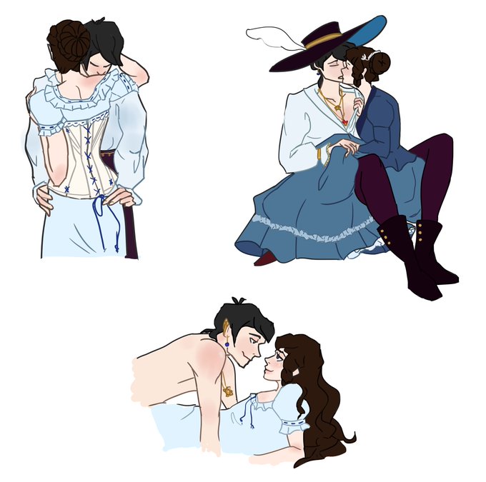 Wanted to give some romantic poses a try, so here're some sketches of my #CurseofStrahd Sorlock Edena and @lokuro's Bard Vincent in their naturally cute state