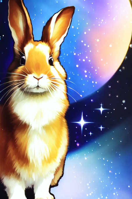 ひたすら宇宙うさぎを召喚しようとして自分が何をしたいかわからなくなってきた🤔🤔🤔 #AIアート