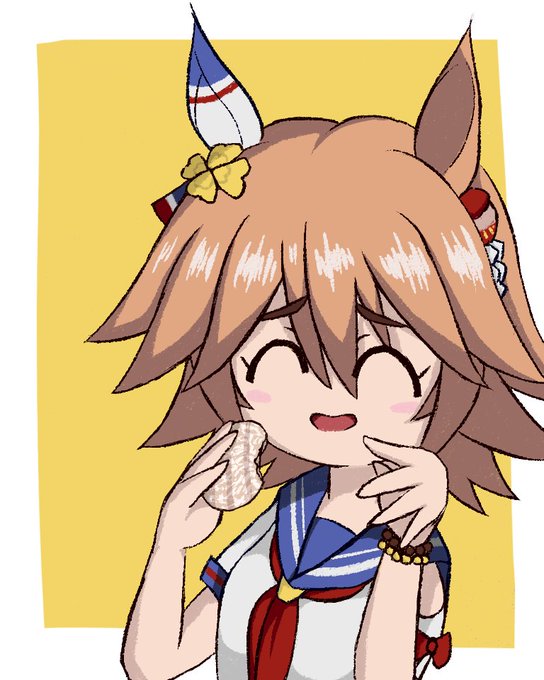 マチカネフクキタル育成しながら雪の宿むさぼってたら似てる気がした。おせんべ好きそう #ウマ娘