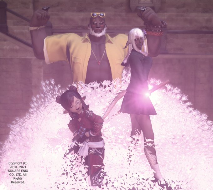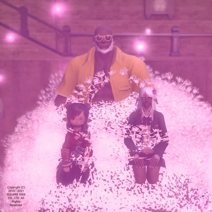 褐色同盟が遂に集結したのでモアイに乗りました!(念願) #FF14 #褐色同盟 #モアイに乗りました
