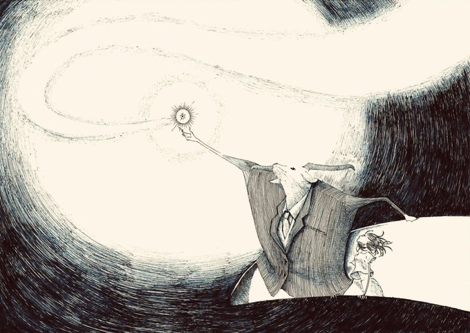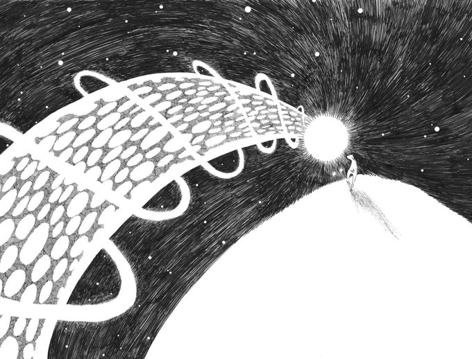 #見た人もなにか無言で光る何かをあげる #イラスト #絵本 #星 #ペン画 #アトリエの系譜S
