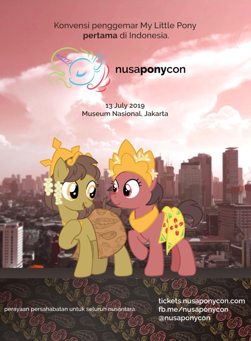 Selamat siang Indonesia! Our very first pony convention is here. The Archipelago's celebration of friendship will light up Jakarta this 13 July. See you at NusaPonyCon!