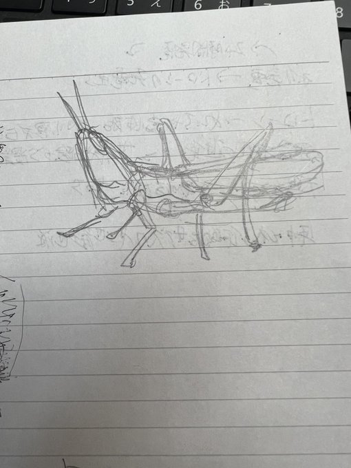 ぱっと見バッタに見えるバッタのような何か(右は下書き)