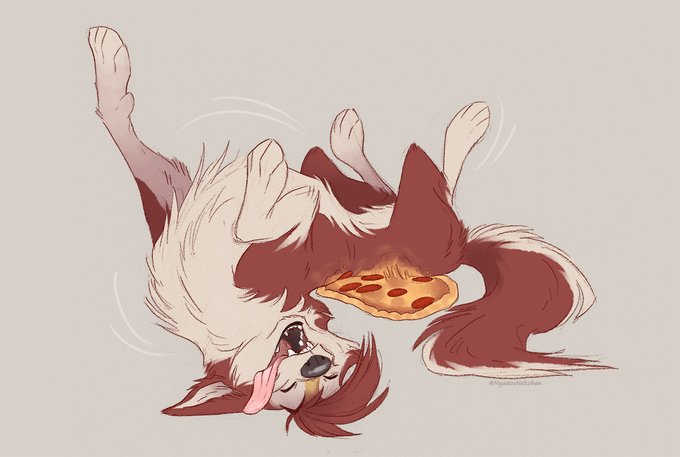 .@ReginaldVoice has found a pizza! So of course he does what any self-respecting wolf would do in that situation...