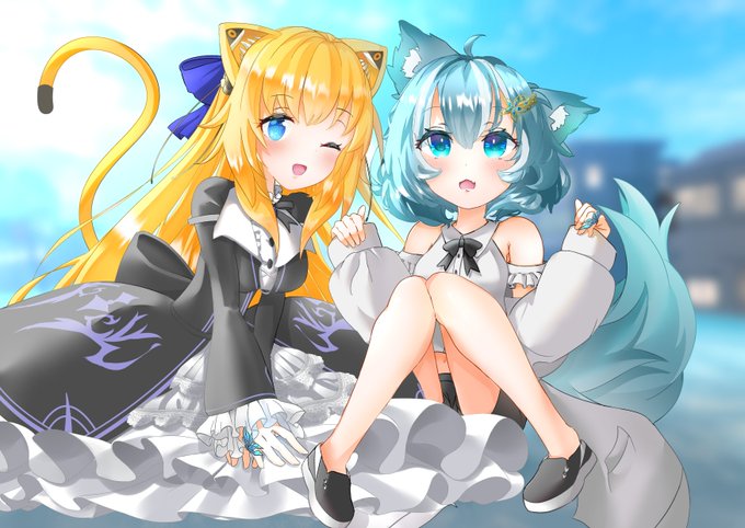 ラビッシュさんに私とあーくを描いてもらいました! かわいすぎない??????? ヤバない???????????????????