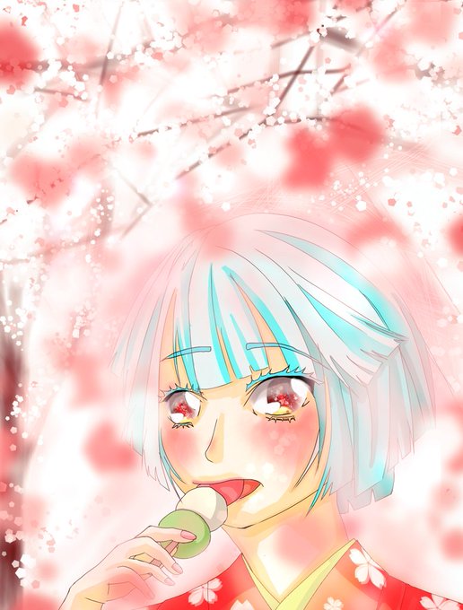 美しく団子を頬張る…のはずがコミカルに。まあ、美味しそうなのでヨシ🌸🍡