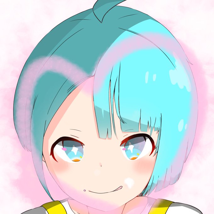 描き終えましたー!全力降り注ぎました。 そこらじゅう思うがままにインクを塗りたくったあとのココロちゃんをイメージし、自分をさらけ出すという意味を込めて描きました! 1度、本当の自分をさらけだしてみよー! #新アイコン #水色髪 #イラスト #インク #星目 #ハート目