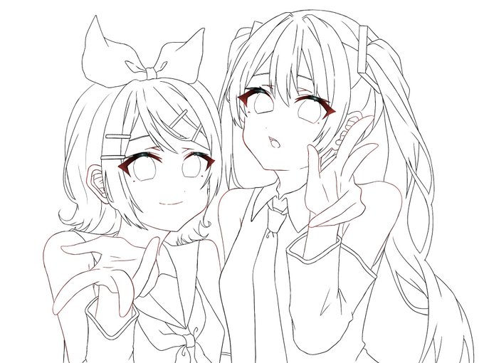 #初音ミク #鏡音リン #フリー線画