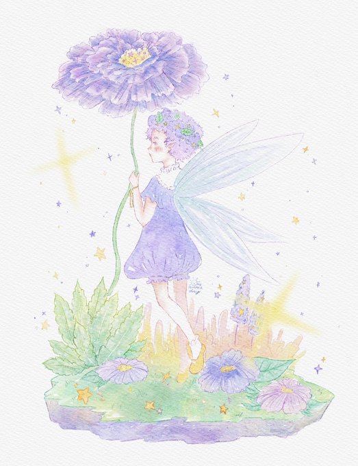 ตื่นเต้นกับการวาดอย่างอื่นที่ไม่ใช่คนมาก งานนี้ได้ลองวาดดอกไม้ วาดต้นไม้เล็กๆดู ก็เหมือนได้ก้าวออกจากเซฟโซนอะไรสักอย่างเลย ฮือ 🥲💜✨