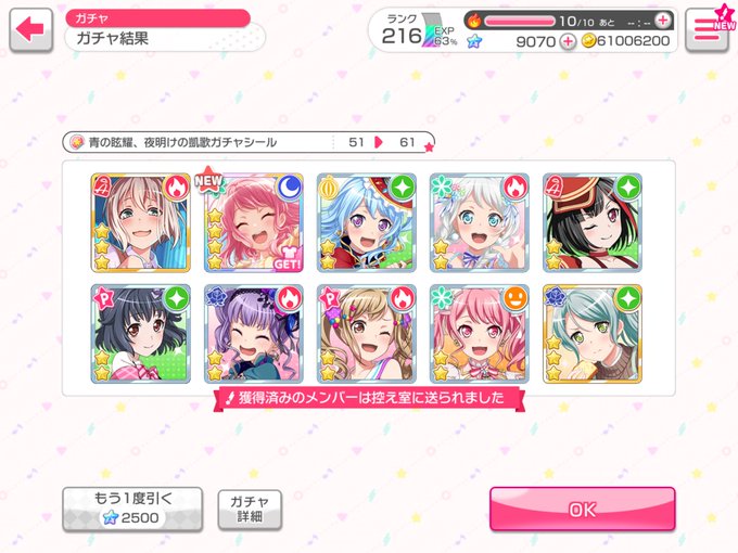やっと日菜ちゃん引けた……!!! ここまで来たならいっそ天井まで行きたかった(?)