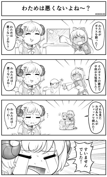 #つのまきあーと #しらぬえ ホロライブ4コマ漫画 「わためは悪くないよね~?」