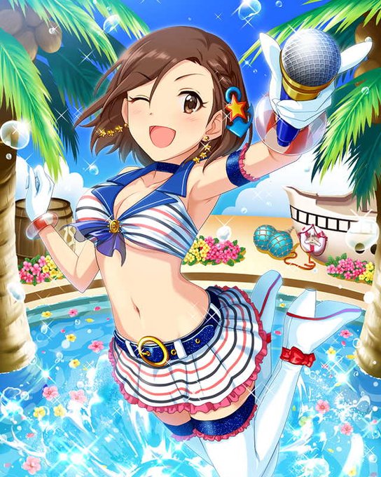 #ブレイク・ワン・モーメント5周年 スマホを買うのが遅く、ちょうど実装の年からデレステを始め出した。モバでは元気なペカーッって感じの笑顔が多く明るいお姉さんだった聖來が、このカードではクールアイドル全開でビシッと決まっていて、さすがデレステ一味違う…と思ったのを覚えている #水木聖來
