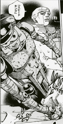 無料公開されてるUJ2020年4月号掲載のジョジョリオンを改めて読んで気付いたけど、この回でスピード・キング(S.K)が3タイプ出てる💡 ①p.328➡️中盤のS.K(63話扉絵の反転?) ②p.329➡️初期のS.K(クワガタ戦のコマが元絵?) ③p.337以降➡️最新版S.K 個人的には不気味な雰囲気の初期S.Kが一番好き😌