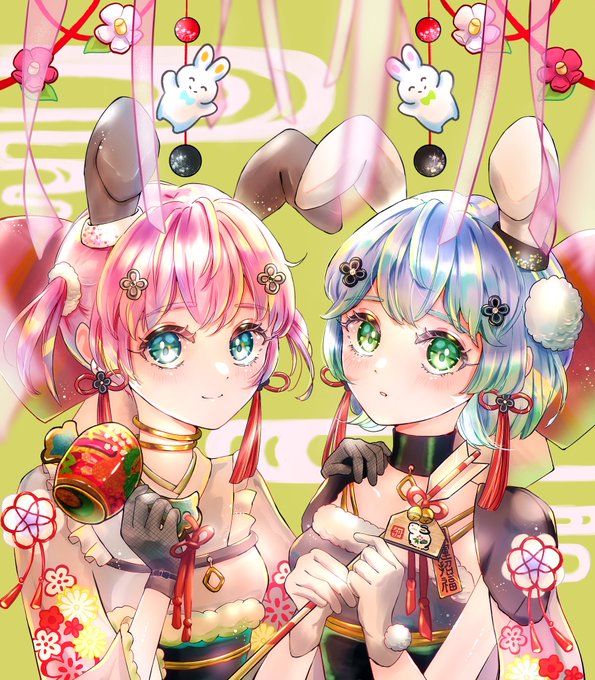 うさぎちゃん&ラビットちゃんの制作過程✍️新年から可愛い、そしてご利益あり🙏な雰囲気に仕上がって、とてもお気に入りな作品となりました😆💖 https://t.co/XRPu1K4gCk