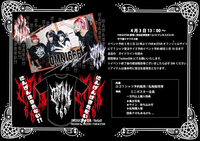 更に!4/3(日)13時~FAR★STAR原宿にてTシャツお渡しイベントを開催!