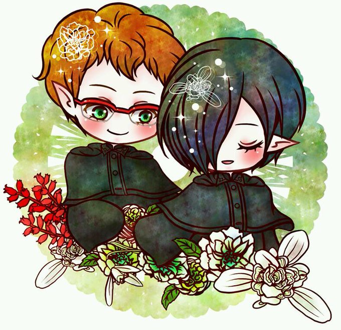ワタクシめが描くとカルモゼこうなります。カルマンだって懐けばこう笑えるさ。← お花はスノードロップ・緑の薔薇(グリーンアイス)・サルビアのつもりで……