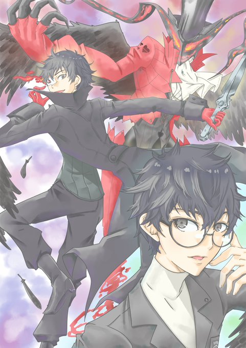 ジョーカー(主人公)&アルセーヌ 勉強ついでに、水彩っぽい塗りで塗ってみましたが、今回の絵は黒多めだからブラシ塗りのが引き締まるのかな~(汗) #ペルソナ5 #PERSONA5 #雨宮蓮 #イラスト #イラスト好きな人と繋がりたい