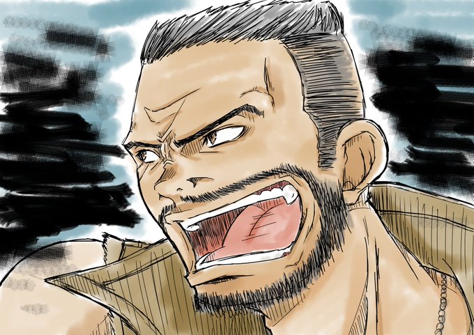 クラウドやエアリスではなく、あえてのバレット(笑) #イラスト #イラスト好きな人と繋がりたい #FF7リメイク FF7リメイク