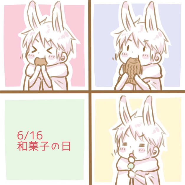 【和菓子の日】 . /) /) (*`ヮ´)<プゥ!(ウメメ!) . /) /) (*`ヮ´)<プゥ!(ウメメ!) . /) /) (*`ヮ´)<プゥ!(ウメメ!) (・8・)<ピヨヨー!(タベスギィ!) #うさぷ