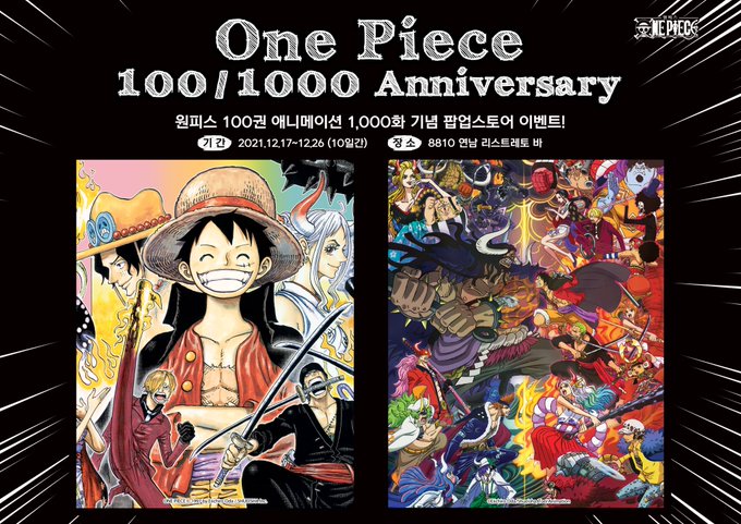 Así luce el póster triple de Oda en la nueva tienda que abre hoy en Corea del Sur, para conmemorar el volumen 100 y el episodio 1000.