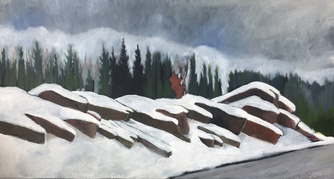 Kim Atkins, OSA, is showing "Algonquin Park HW 69 in February" as part of MOSAIC.