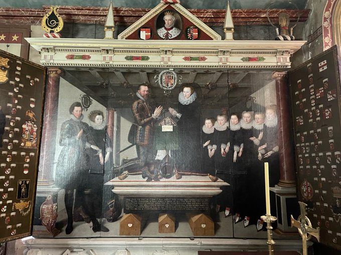 First weekend test driving the new @YalePevsner for Wiltshire, especially good on Lydiard Tregoze, a humdinger of a church in suburban Swindon, crammed full of monuments to the St Johns - including a remarkable painted family portrait, a tender alabaster, & a swaggering gold lad.