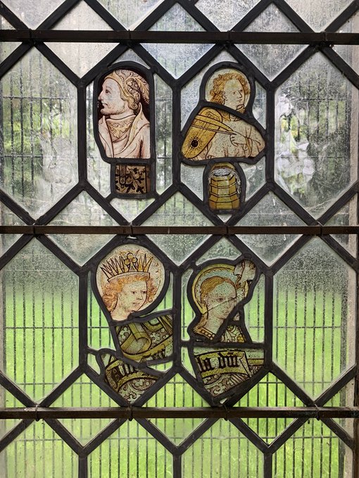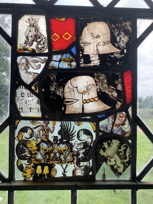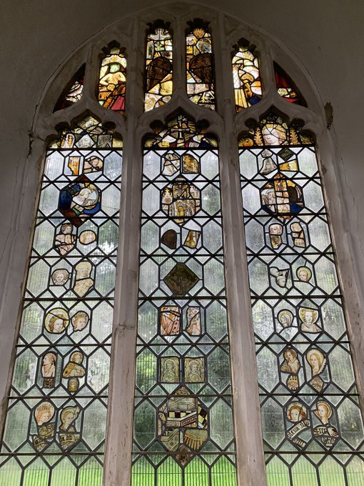 The refurbishment of Warham St Mary, N Norfolk (with box pews & triple decker pulpit, still there satisfyingly) included relighting the windows with a wonderful fragmentary mixture of local & continental stained glass, all mixed up like a scrap book.
