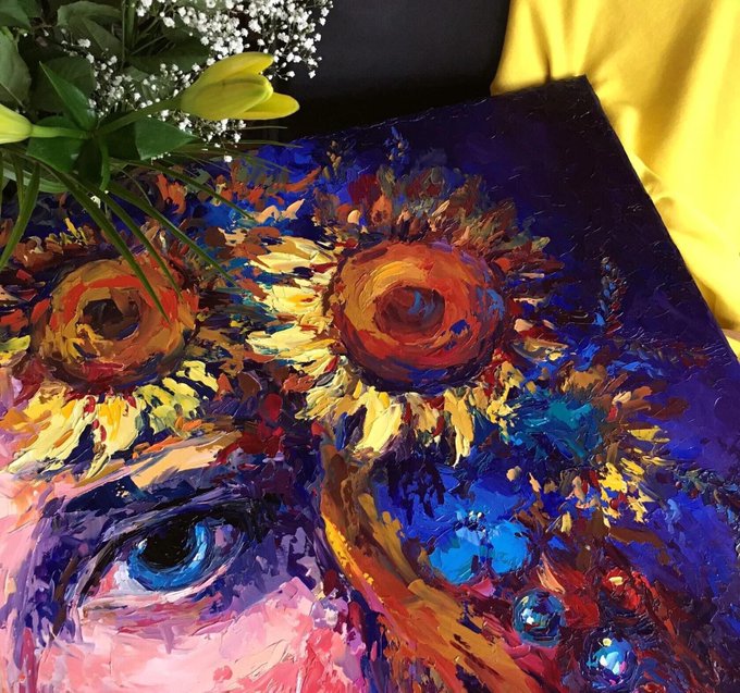 "Girl with a wreath of #sunflowers"