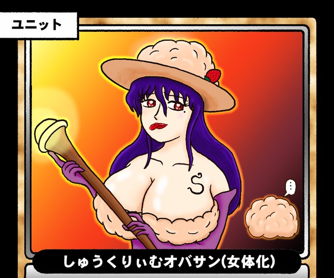 マオーの女体化がありなら他の女性キャラの女体化もいいはず!というわけで休みを使ってしゅうくりぃむオバサンの女体化。マカロンちゃんはこんな風にに育って欲しいとの願いを込めて。 #マッツァンカードゲーム #勝手にMCGカードイラスト