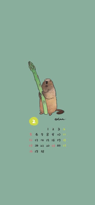 赤ちゃんマーモットとアスパラの2月カレンダー 待ち受けにどうぞ🏔️