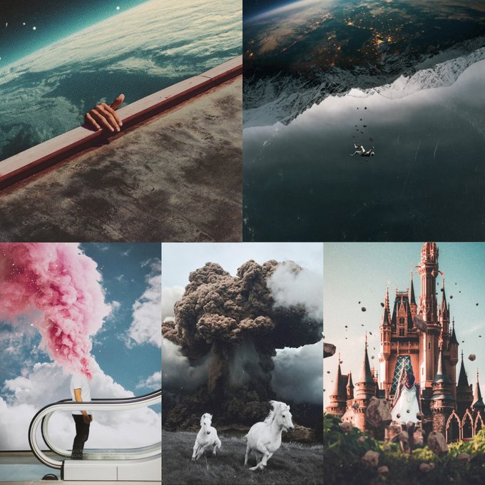 A collection of dreamy digital collages bending the real with fantasy