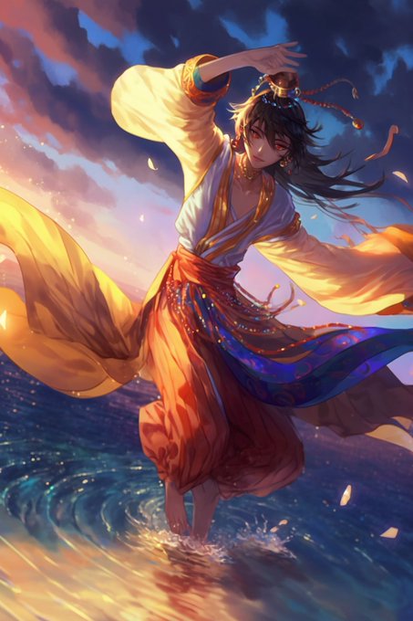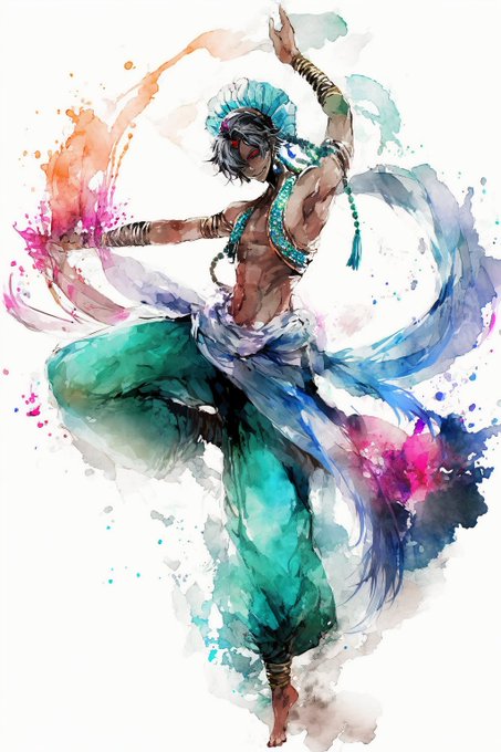 #nijijourney #AIイラスト ベリーダンスも!腕や布の動きのイメージで絵の具を走らせてくれてるようでとてもよい✨