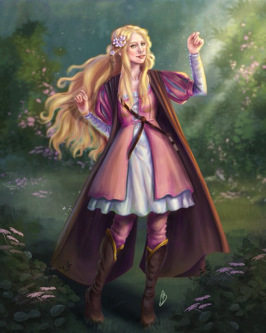 Latest finished dungeons and dragons commission, a lil human warlock or maybe some sort Disney princess??? 🥰😅