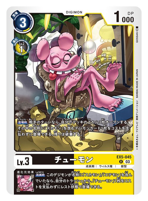 2023年8月25日発売の【デジモンカードゲーム テーマブースター アニマルコロシアム】にて「チューモン」「シャコモン」「オクタモン」「ダゴモン」描かせて頂きました!宜しくお願い致します!