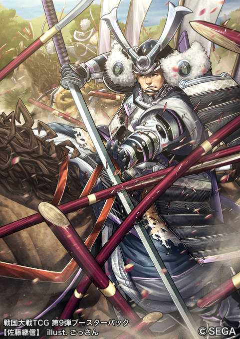 SEGA様から3月29日発売の『戦国大戦TCG第9弾ブースターパック』にて【筒井順慶】【佐藤忠信】【佐藤継信】の3枚担当させて頂きました。今回も良いキャラ揃いです。どうぞ宜しくお願い致します〜!!