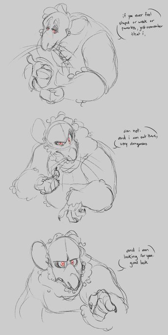 @heybiji Honestly you don't even need to draw him (or them), I just love sharing to anyone who asks my circus guy, Tim, who has a big rat man in him... who's name is Ratman. 🥺!! They definitely love and respect each other very much. 😌 Eventually. Maybe.