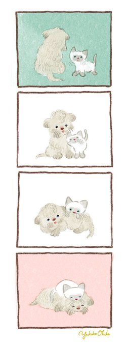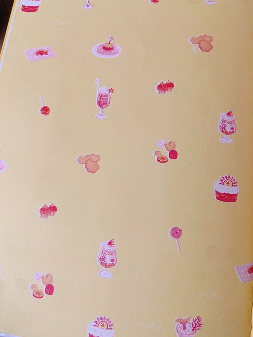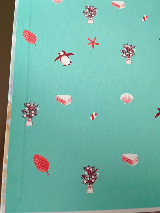 2Cイラストが話題なので‥ 絵本の見返しにはよく2C使っています。結構こだわりがあって何かの包装紙みたいなイメージで描いてます🎁2色しか使えないからこそ、幅広く感じられる2色の表現になればいいなと✍️