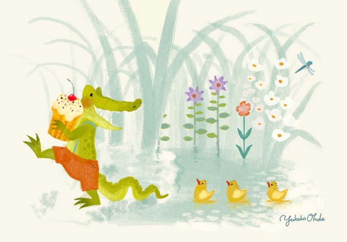 🧁🐊🐥🐥🐥 ぞろぞろ #illustration